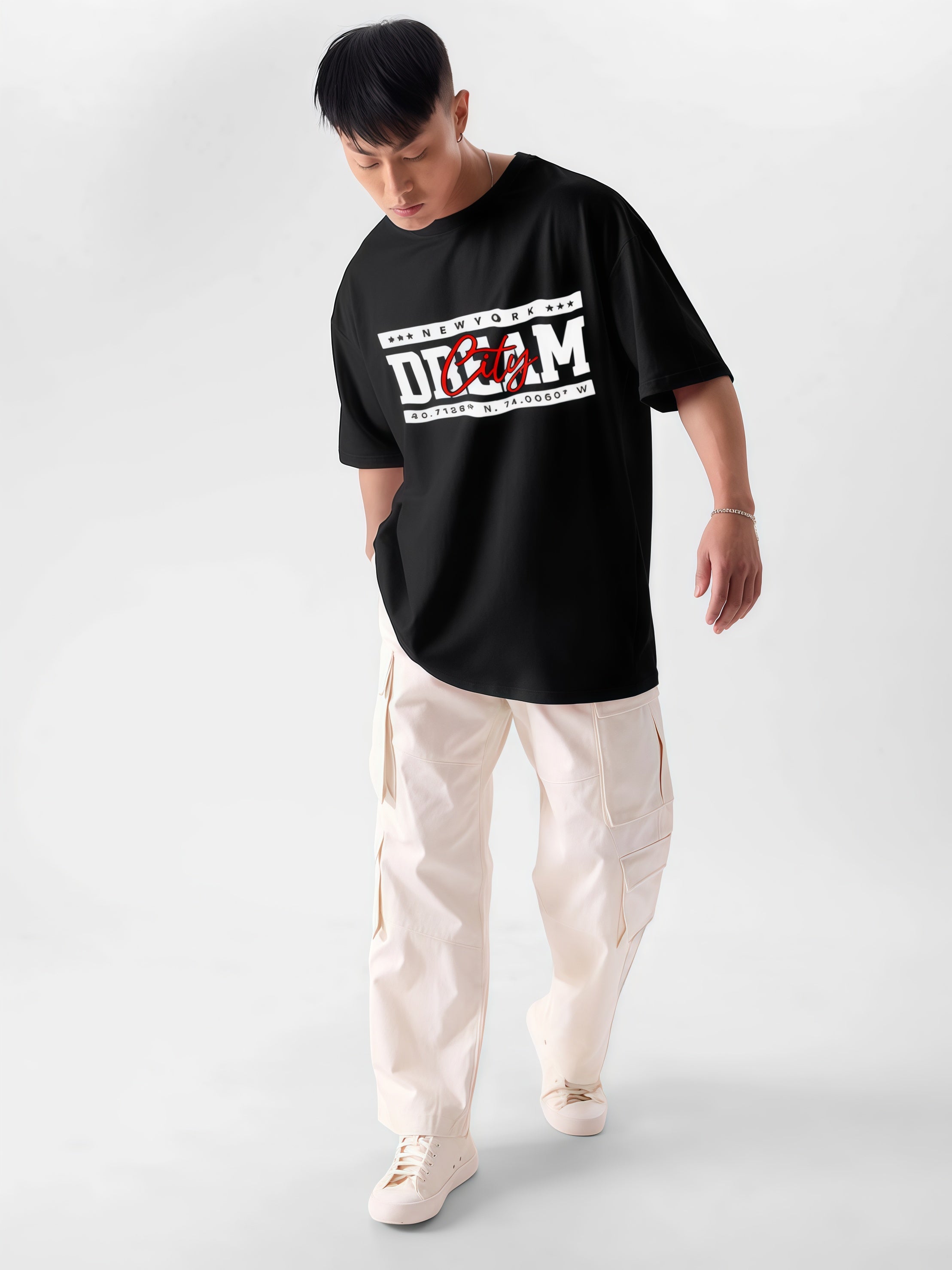 Oversized Drop Shoulder Black T-Shirt – DREAM Cotton Terry Streetwear Tee for Men