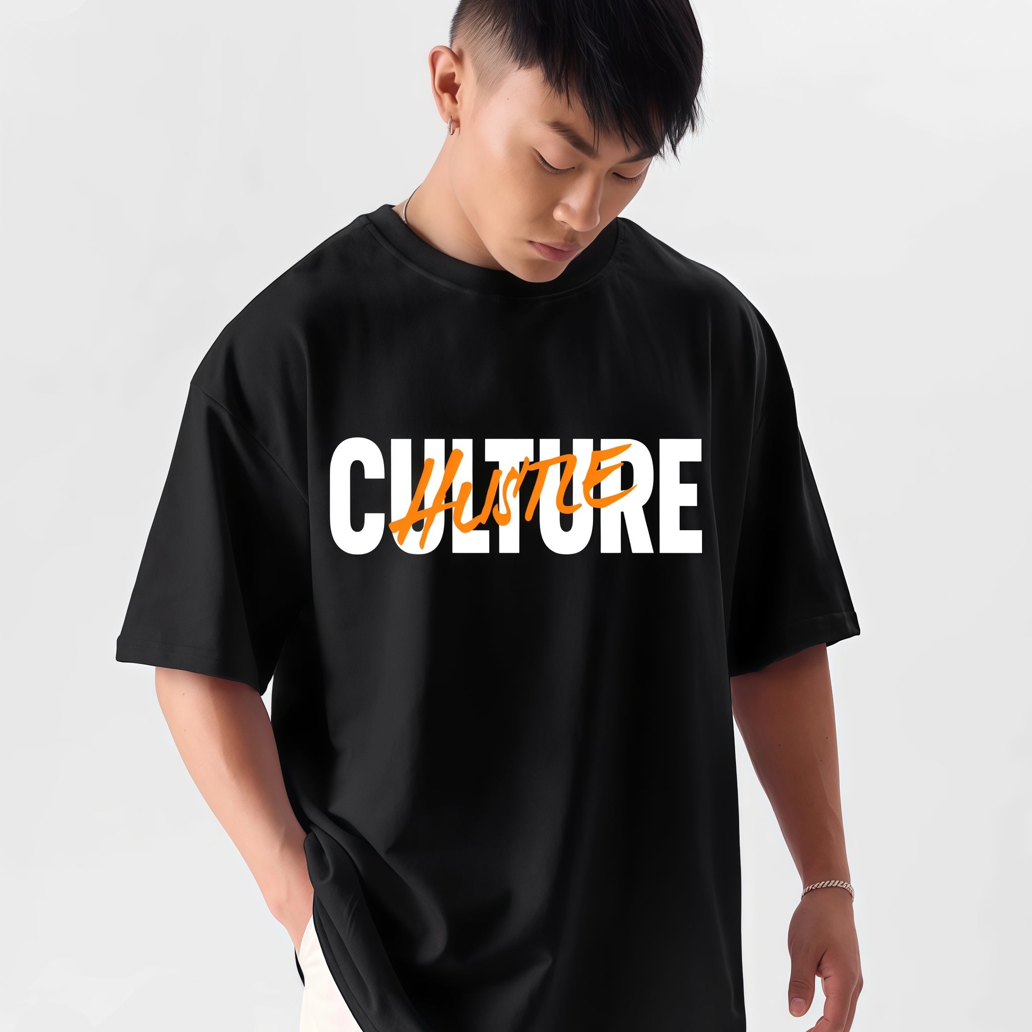 Oversized Drop Shoulder Black T-Shirt – Hustle Culture Cotton Terry Streetwear Tee for Men