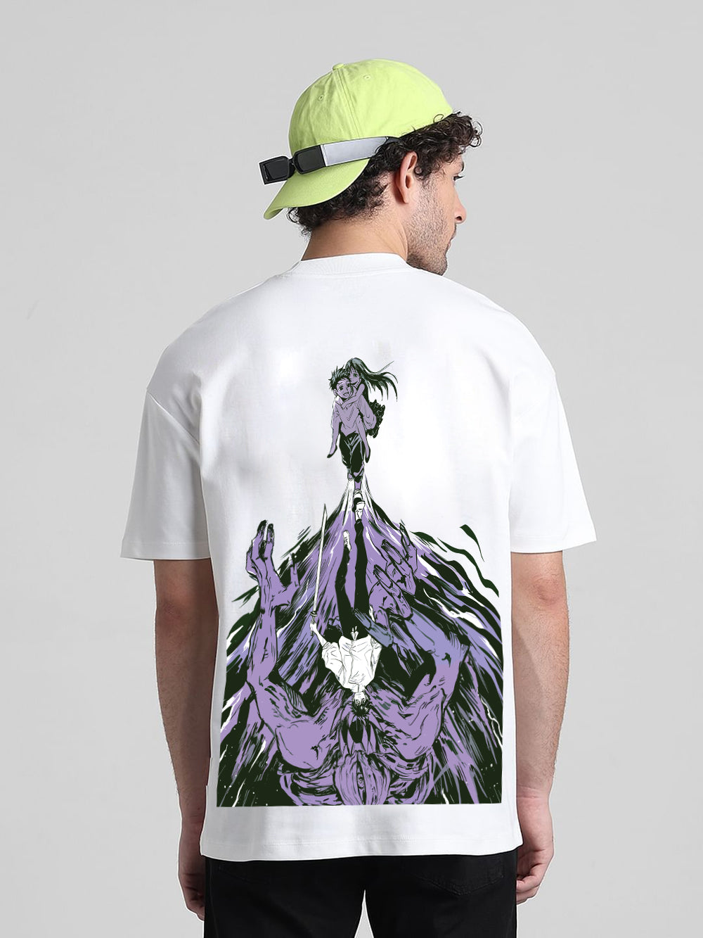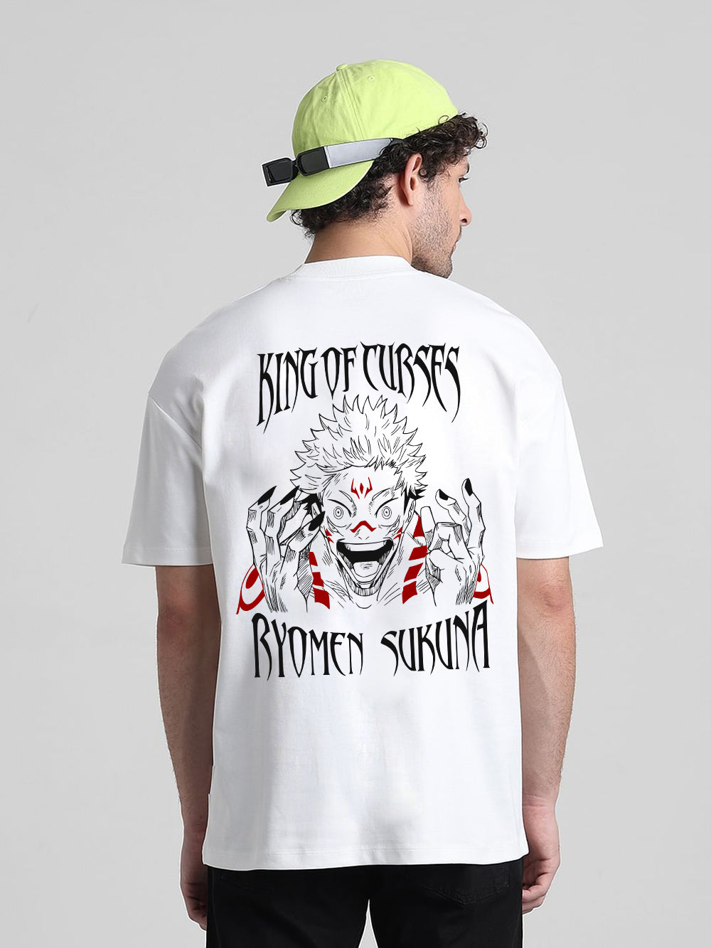 T-Hustler Ryomen Sukuna Back Printed Oversized Cotton Terry T-Shirt – Half Sleeve Round Neck (Jujutsu Kaisen)