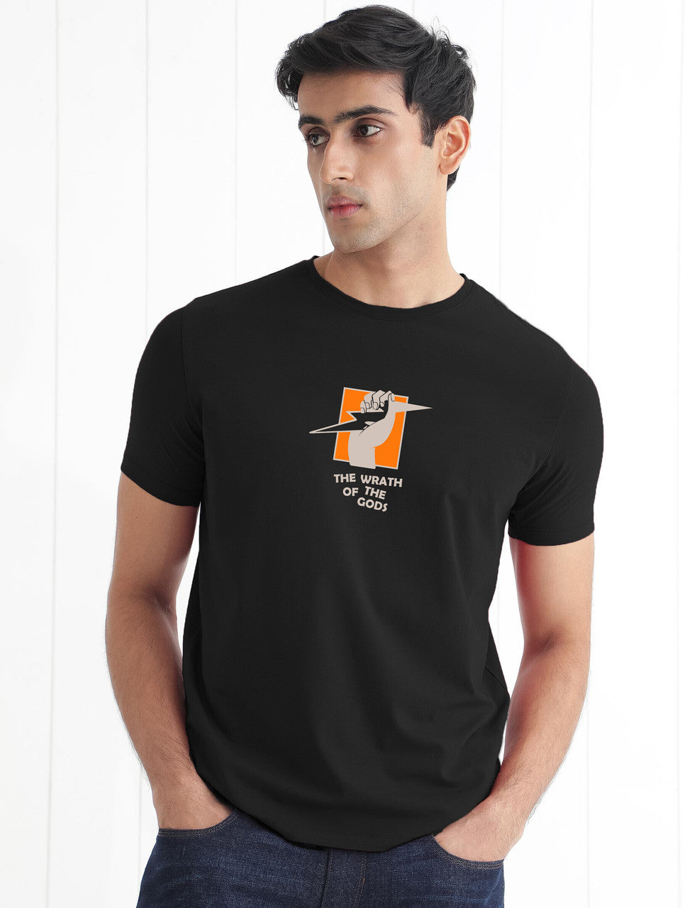 The Wrath of the Gods Men Printed Round Neck Cotton Blend Black T-Shirt