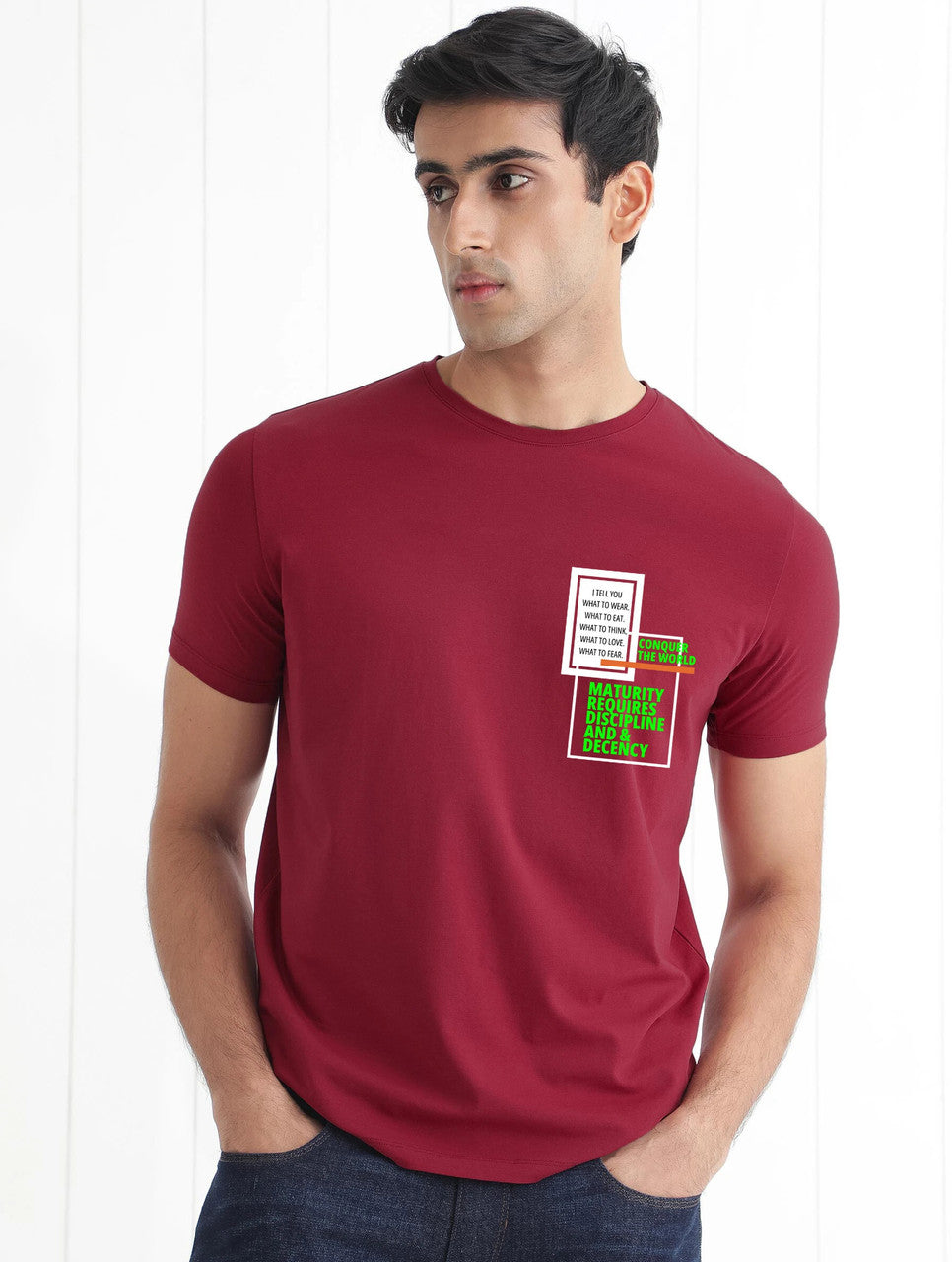 The Conquer Men Graphic Print Round Neck Premium Cotton Maroon T-Shirt