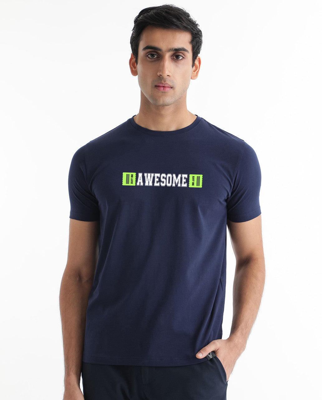 AWESOME Printed Navy Premium cotton tshirt