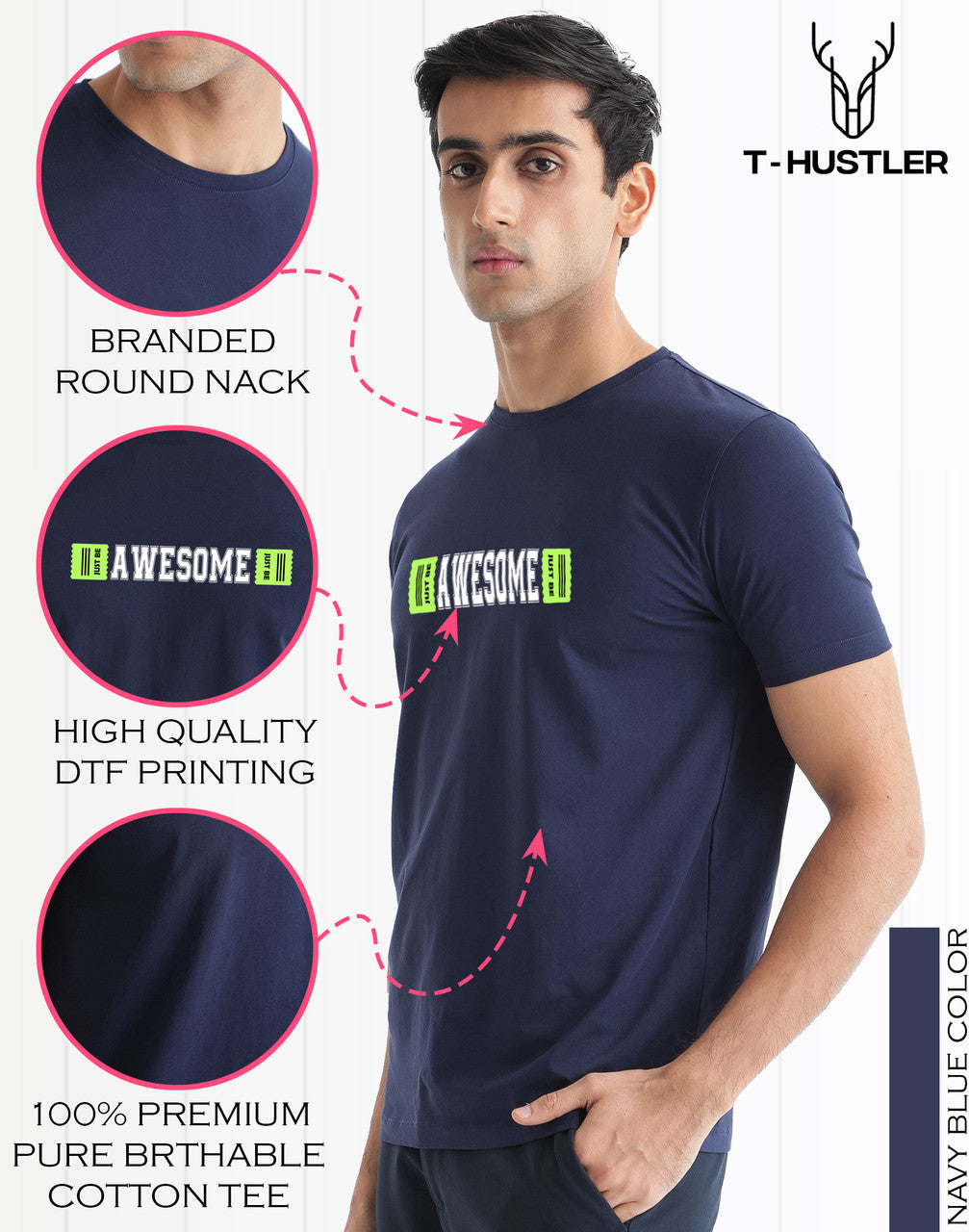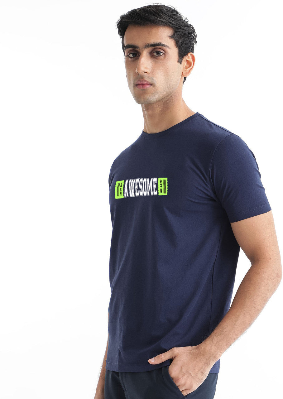 AWESOME Printed Navy Premium cotton tshirt