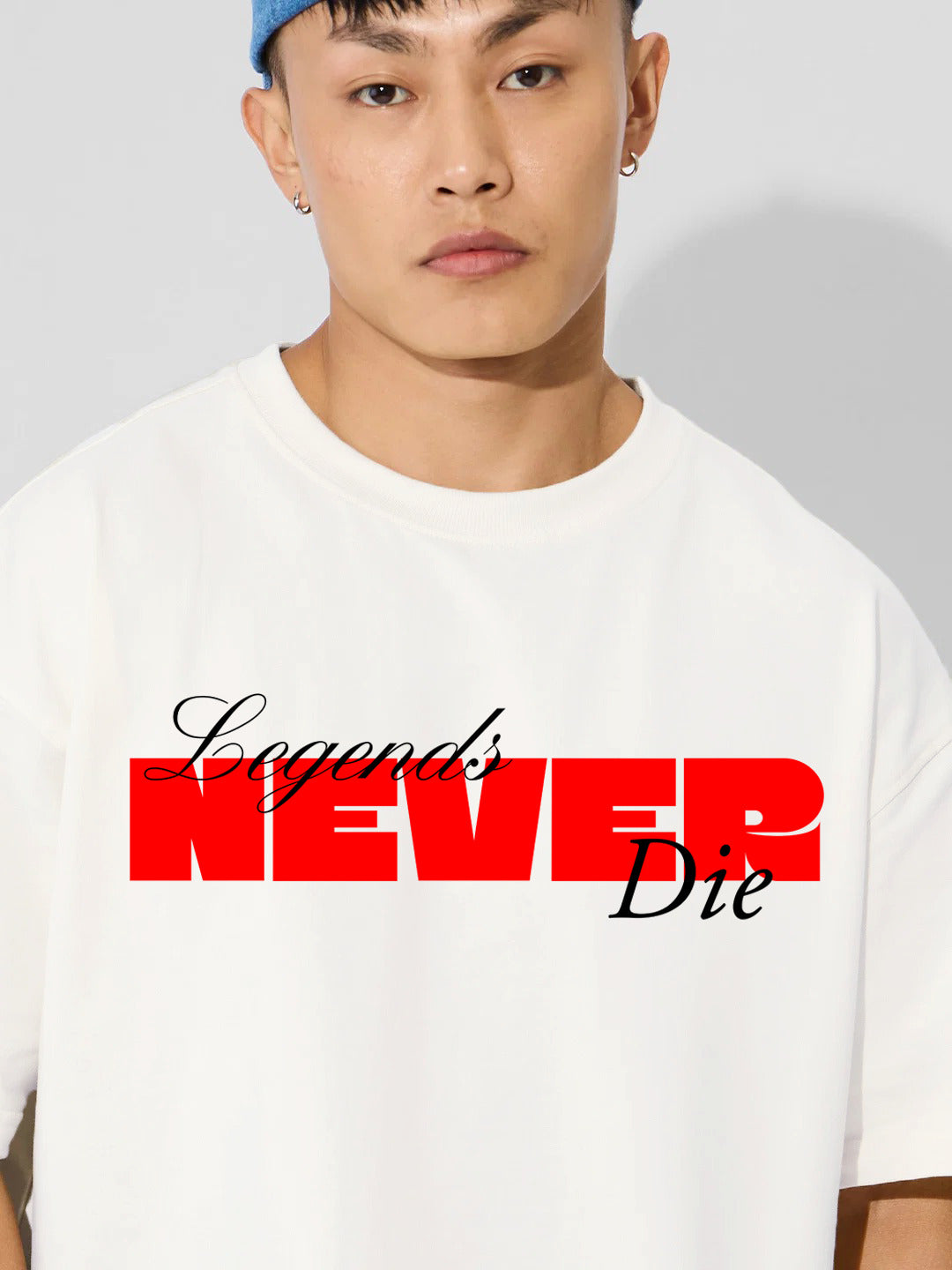 The Legends Never Die print makes a statement without saying a word — representing the mindset of go-getters who don’t settle. Pair it with joggers, cargos, or denim for a laid-back yet powerful look that speaks volumes.