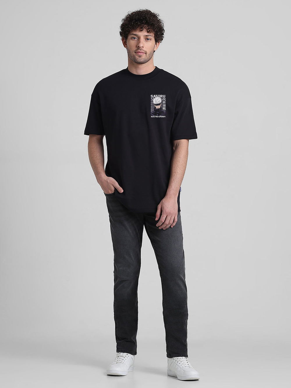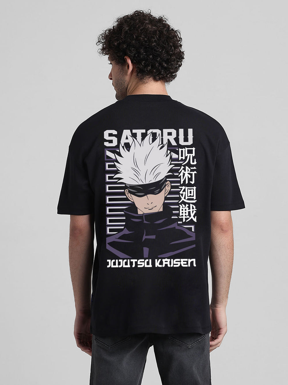 T-Hustler Satoru Gojo Back Printed Oversized Round Neck Half Sleeve Cotton Terry T-Shirt