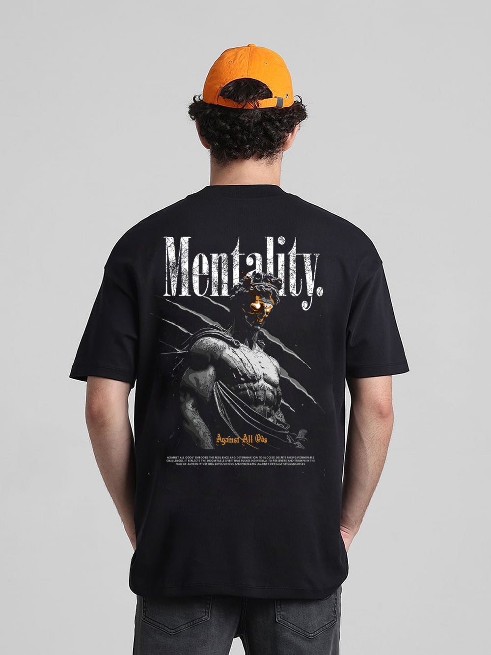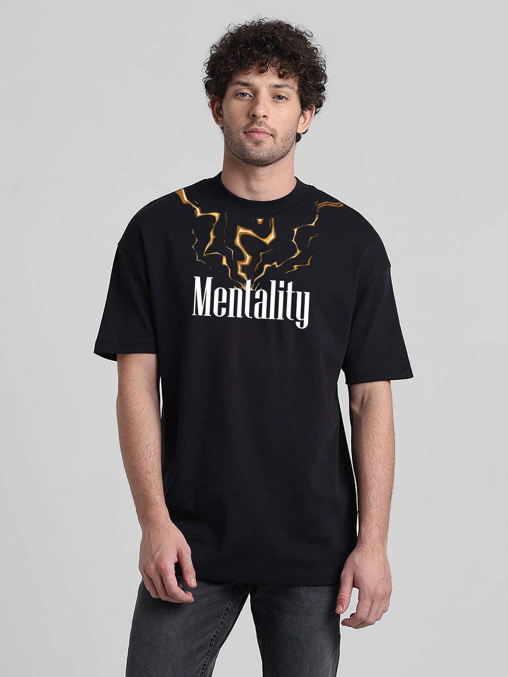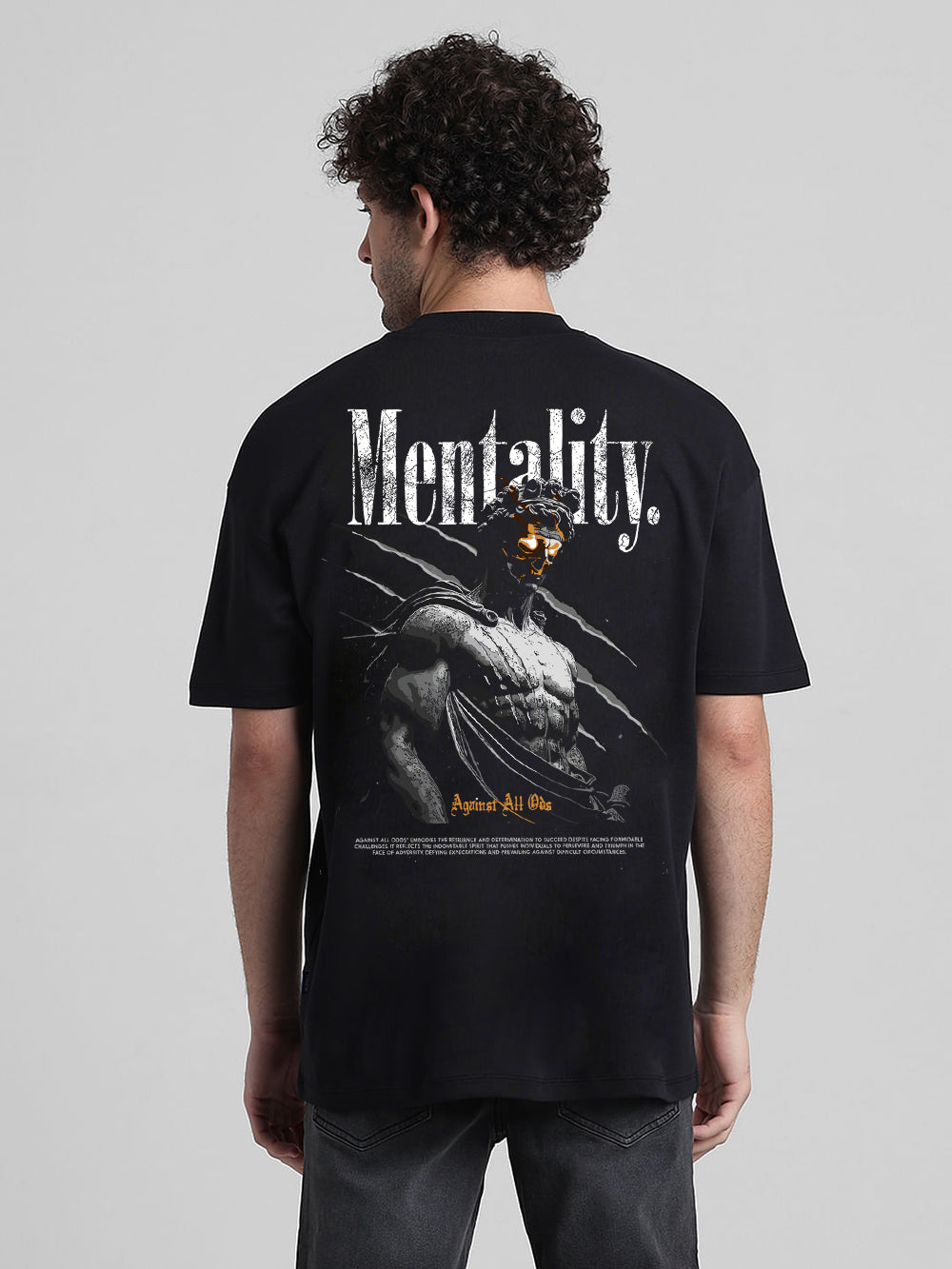 Express your mindset with this Mentality oversized t-shirt, crafted from soft, high-quality cotton terry fabric for all-day comfort. Featuring a bold back print that inspires focus and determination, this tee blends streetwear style with motivational vibes. Its relaxed oversized fit, round neck, and half sleeves make it perfect for those who value both comfort and statement-making fashion.