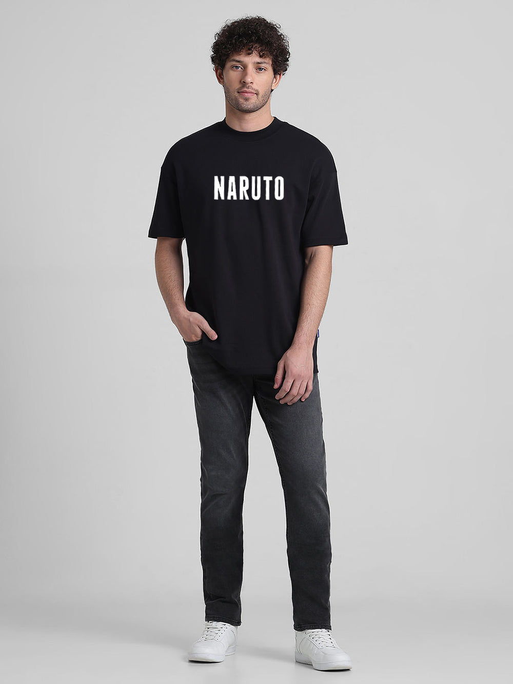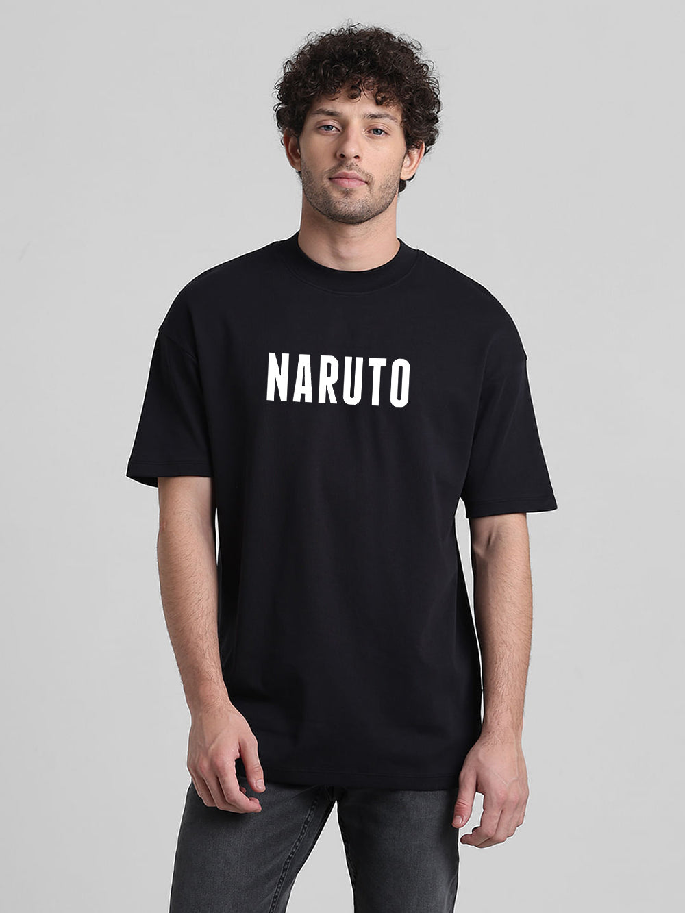 T-Hustler Naruto Back Printed Oversized Cotton Terry T-Shirt – Half Sleeve Round Neck (Anime Streetwear)