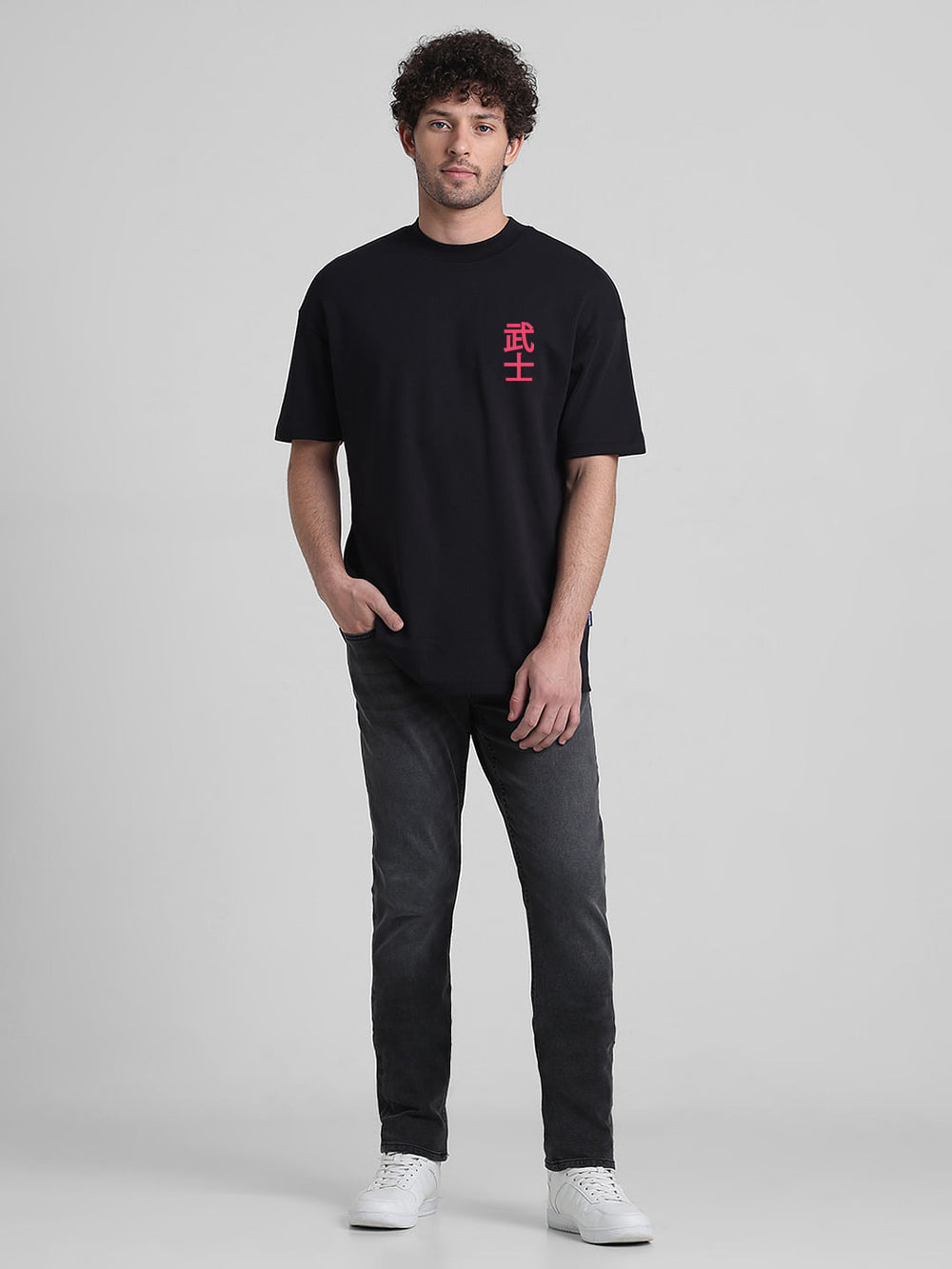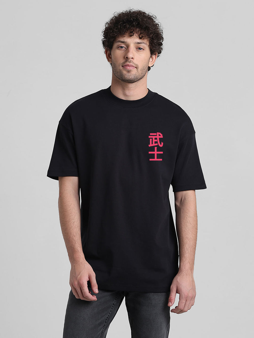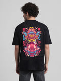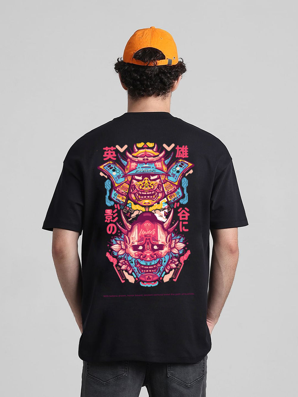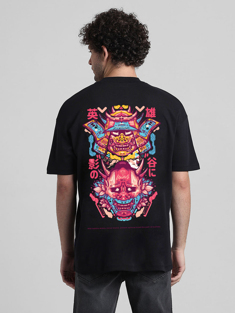 T-Hustler Samurai Face Back Printed Oversized Cotton Terry T-Shirt – Half Sleeve Round Neck