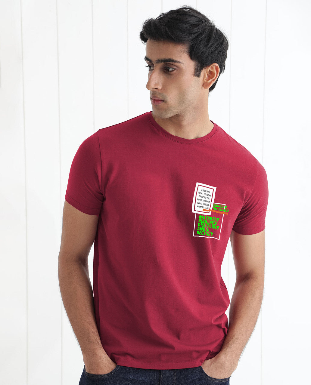 The Conquer Men Graphic Print Round Neck Premium Cotton Maroon T-Shirt
